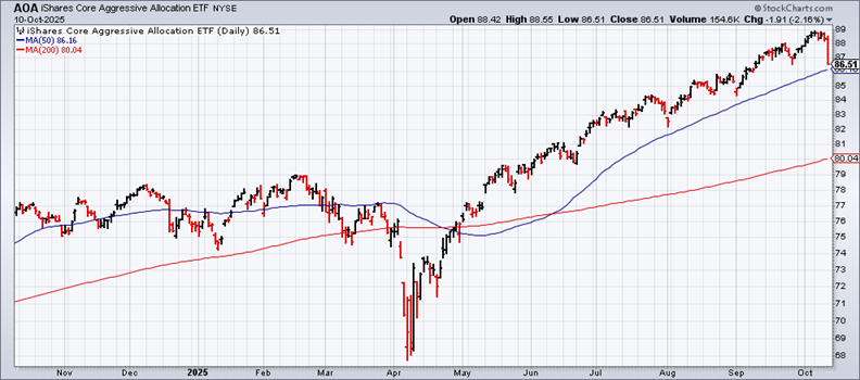 The case for viewing Friday’s slide as noise, at least for now, is in even sharper relief via a conservative version of global asset allocation (AOK).