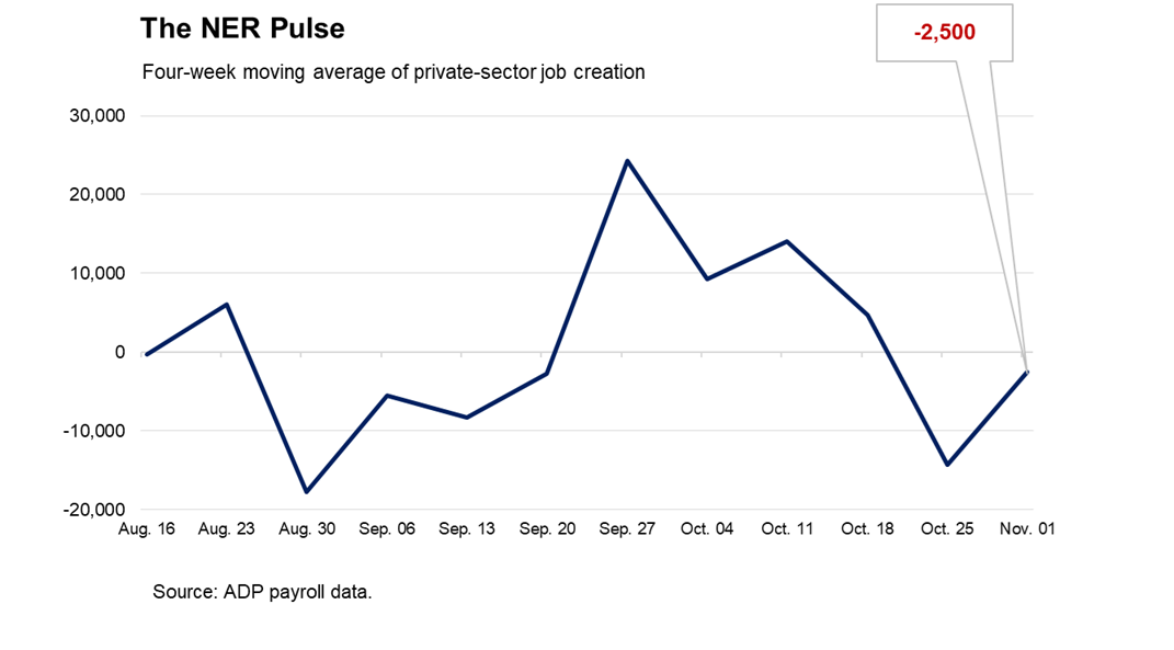 Several private sources suggest as much. Revelio Labs estimates that the payrolls contracted in October while ADP reports that “private employers shed an average of 2,500 jobs a week as employment losses slowed heading into November.”