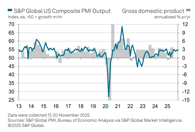 Another early look at November economic activity also paints a relatively upbeat profile. US business activity accelerated for a second successive month in November, according to the US Composite PMI Output Index, a survey-based GDP proxy. “The upturn looks encouragingly broad-based for now, with output rising across both manufacturing and the vast services economy,” said Chris Williamson, chief business economist at S&P Global Market Intelligence. “A marked uplift in business confidence about prospects in the year ahead adds to the good news.”